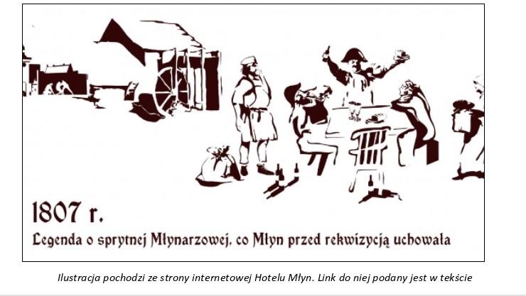 Przyjmując 1806 za rok budowy tego przepustu wodnego, można domniemać, że rok później, a więc w 1807, mostkiem tym maszerowały wojska napoleońskie w drodze na Królewiec w czasie kampanii przeciwko Rosji i sprzymierzonym z nią Prusom. Jak wiemy, kampania ta zakończyła się pokojem w Tylży, zawartym pomiędzy Napoleonem i carem Aleksandrem I na tratwie na środku rzeki Niemen na początku lipca 1807 r. Puszczając wodze fantazji można przypuścić, że wśród wojska napoleońskiego przejeżdżającego przez Dąbrowę w drodze na Królewiec byli francuscy oficerowie, którzy wsławili się swoim hałaśliwym zachowaniem w młynie wodnym zwanym onegdaj Strauchmühle, czyli Młyn Krzaczasty. Ten istniejący od XIII w. młyn był również położony nad rzeką Kumielą, ale niżej niż Młyn Zakrzewski (Liefarths-Mühle / Gross Wesseln Mühle). Obiekt ten dziś położony przy ul. Kościuszki funkcjonuje od lat jako hotel Młyn, a wspomnianą historię z żołnierzami francuskimi opowiada legenda „O Młynarzu i sprytnej Młynarzowej, która młyn przed rekwizycją uchowała”.