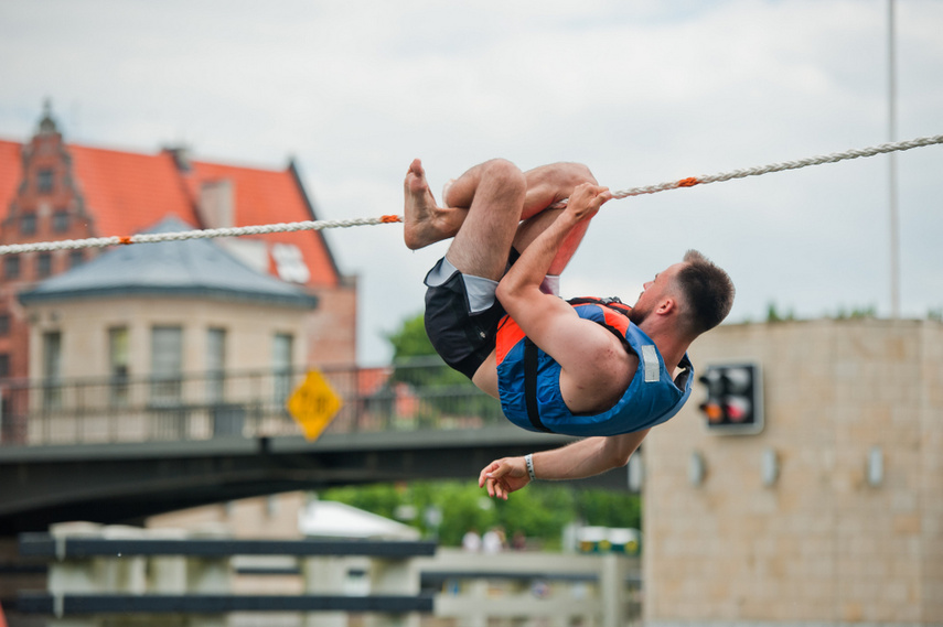 70 metrów na linie nad rzeką Elbląg. Ten dystans trzeba było pokonać używając wyłącznie rąk. Chętnych do podjęcia wyzwania nie brakowało. A to tylko jedna z atrakcji trwających Dni Elbląga.