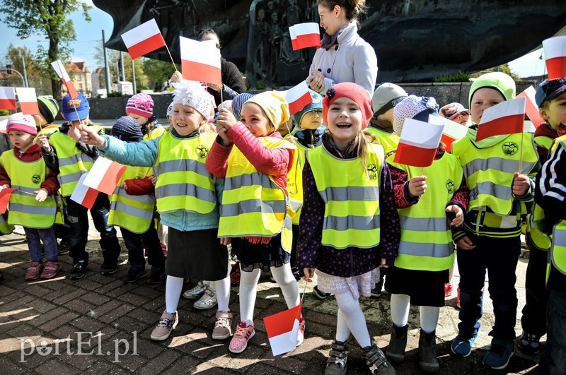 Najmłodsi elblążanie uczcili dziś (29 kwietnia) święta majowe. Najpierw zademonstrowali swój patriotyzm maszerując ulicami miasta z biało-czerwonymi flagami. Przy Pomniku Odrodzenia czekał na nich wiceprezydent Elbląga Jacek Boruszka, który odsłonił tablice informujące o okolicznościach uchwalenia Konstytucji 3 Maja.