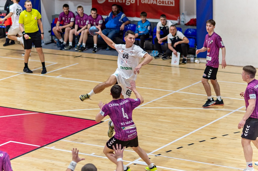 Piłkarze ręczni Silvant Handball, po bardzo wyrównanym meczu, pokonali przed własną publicznością młodych zawodników z Olecka 27:25. Dzięki tej wygranej nasz zespół wskoczył na 4. miejsce w II-ligowej tabeli.