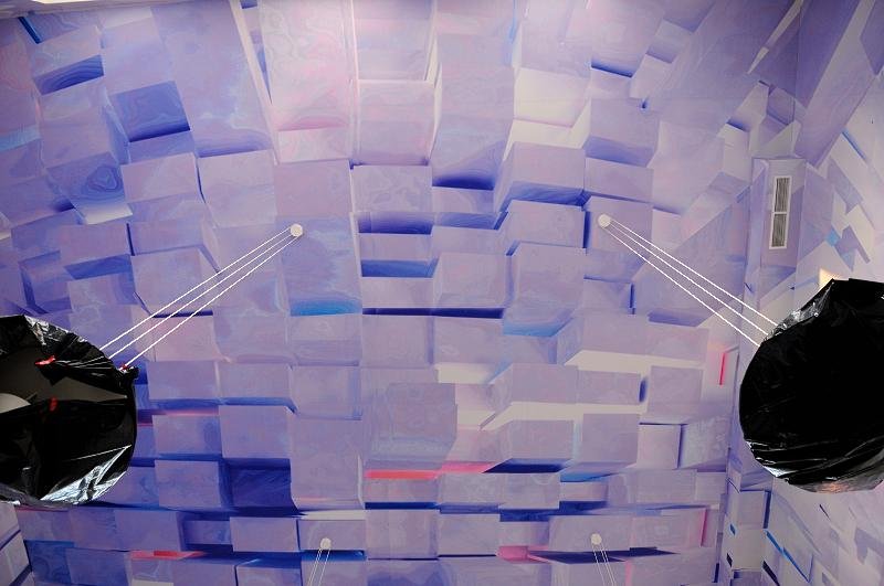 Najciekawszym elementem nowego wizerunku stacji jest sufit - kolorowy i trójwymiarowy. Przypomnijmy, że Urząd Miejski chcąc nadać elbląskiemu dworcowi oryginalności ogłosił kilka miesięcy temu konkurs na aranżację wnętrza obiektu. Zwyciężył projekt Joanny Grodeckiej. Strop i górna część ścian pokryte zostały tapetą przedstawiającą fioletowo-różowe prostokątne bryły.