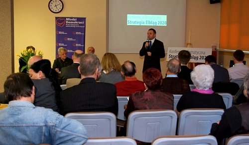 Podkreślił, iż uważa, że ład przestrzenny to między innymi służby urbanistyczne i architektoniczne w mieście. Dlatego jest zwolennikiem ciągłości w planowaniu oraz ciągłości w egzekucji tego, co się zaplanuje. W swoim wystąpieniu zwrócił się także do Grzegorza Nowaczyka (członek Zarządu Województwa objął patronatem inicjatywę Młodych Demokratów: – Wiemy, że będzie pan kandydował na prezydenta miasta. To są więc wyzwania, które będą stały przed nowymi władzami. Ludzie czekają na infrastrukturę sportową, rekreacyjną. To jest niedopuszczalne, by mieszkańcy Elbląga jeździli do Ostródy czy Sopotu korzystać z aquaparków. Oczekujemy spójnych działań – zaapelował.