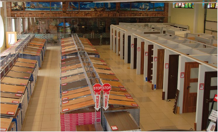 Na powierzchni 700 m kw. znajduje się bogata ekspozycja produktów takich marek jak: Classen, DRE, Gerda, KMT, Pol-Skone, Arbiton, Klimek-Kluś, Asilo, Ronkowski, Balterio, Marchewka i wiele innych.