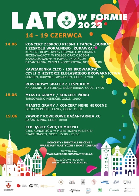 Jeszcze dziś - koncert Zespołu Pieśni i Tańca "Dumka" i Zespołu Wokalnego "Żurawka" oraz spotkanie w Kawiarence CLIO dotyczące historii elbląskiego browarnictwa. W sobotę - kolejne koncerty z cyklu Miasto.Gramy, o których pisaliśmy w tym artykule. A w niedzielę - Elbląskie Święto Muzyki, czyli kontynuacja cyklu koncertów w przestrzeni miejskiej.