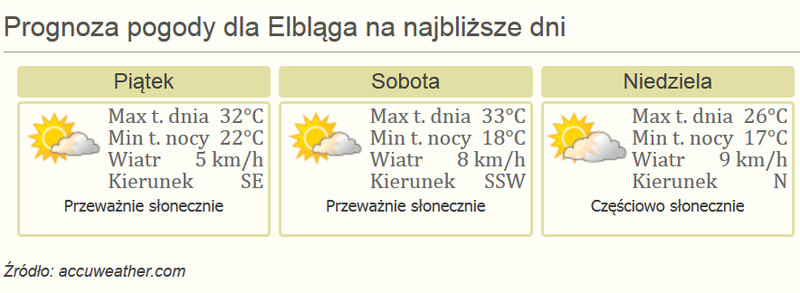 Nareszcie mamy lato w pełnej odsłonie i czeka nas naprawdę upalny weekend. Warto już dziś pomyśleć, gdzie ruszyć w poszukiwaniu wody dla ochłody. Przypominamy, że w rzece Elbląg obowiązuje całkowity zakaz kąpieli! Można obrać kierunek na Zalew Wiślany - woda w Suchaczu, Kadynach i w Tolkmicku jest czysta i można kąpać się w niej bez obaw. Pogodę na bieżąco sprawdzicie tutaj.