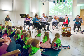 Poza licznymi zabawami, w których skład wchodziły gry, zagadki i quizy, nadarzyła się okazja, by dotknąć, poznać, a nawet zagrać na instrumentach strunowych w obecności profesjonalistów. W trakcie koncertu edukacyjnego została przedstawiona budowa skrzypiec, wiolonczeli, altówki czy kontrabasu, którym dzieci mogły się przyjrzeć na żywo z bliska.