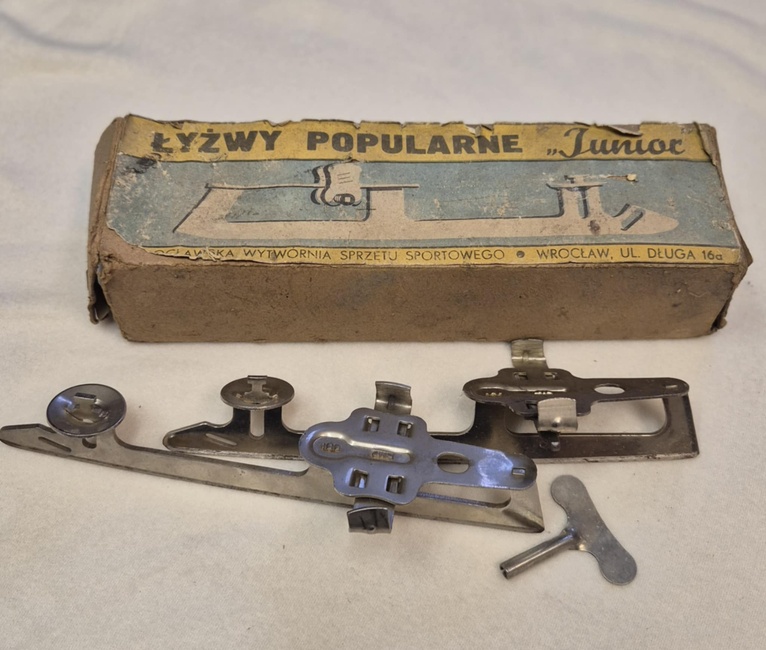 Kolejny obiekt to łyżwy popularne „Junior” z Wrocławskiej Wytwórni Sprzętu Sportowego. Przykręcano je kluczykiem do specjalnie przystosowanych butów. Nie było to rozwiązanie najwygodniejsze w użytkowaniu, ale dawało możliwość korzystania z uroków znacznie surowszych przed laty zim. Trudno nie wspomnieć tutaj o wspaniałych łyżwiarskich tradycjach Elbląga z olimpijskimi sukcesami Heleny Pilejczyk na czele.