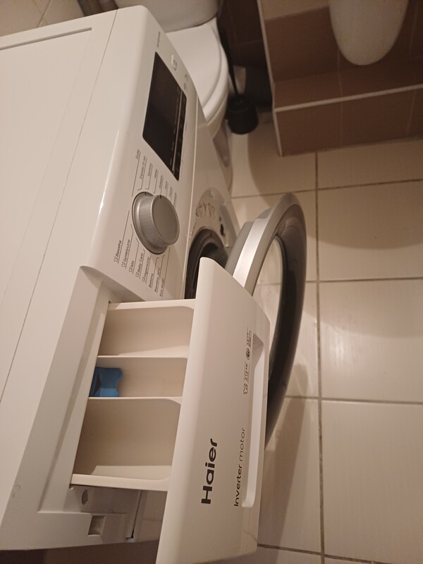 PRALKĘ marki HAIER, głębokość 44 cm. Szerokość 60 cm. Wysokość 82 cm, kupiona 2 lara temu, wsad 7 kg, BARDZO EKONOMICZNA cena 300 zł