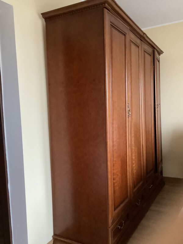 Doskonale sprawdzi się w urządzaniu sypialni w tradycyjnym lub nowoczesnym wnętrzu. w skład zestawu wchodzi szafa, komoda, stolik nocny oraz łóżko. Materac wliczony w cenę.