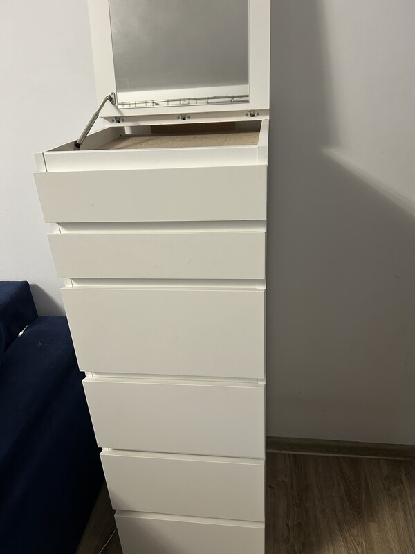 Praktyczna komoda z lustrem z kolekcji Malm (Ikea), idealna do przechowywania ubrań i dodatków. Posiada 6 pojemnych szuflad, które pozwolą na uporządkowanie przestrzeni w Twoim domu. Komoda jest w dobrym stanie, gotowa do użytku. Odbiór osobisty z ul. Kościuszki w Elblągu. Transport i zniesienie z III piętra (blok z windą) we własnym zakresie.