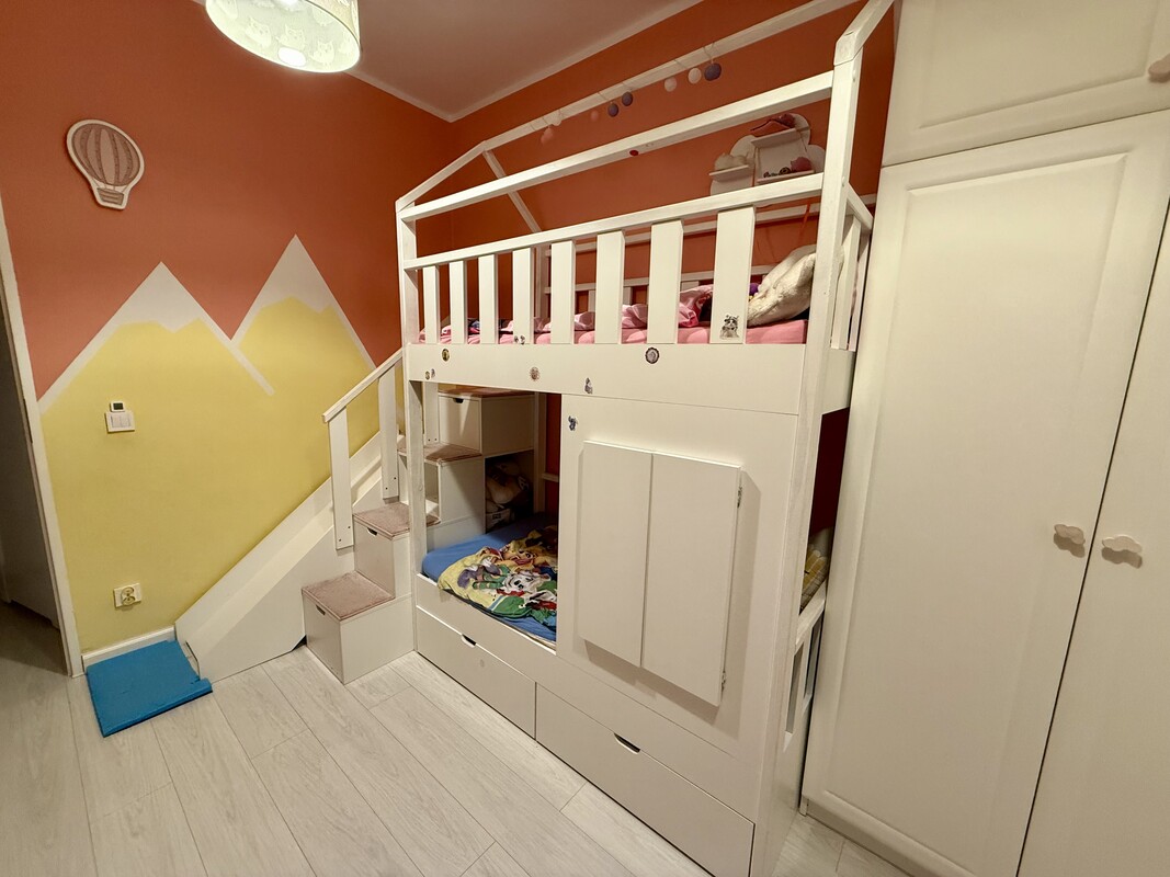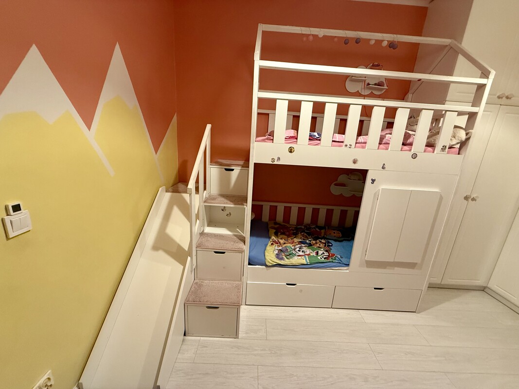 Mam do zaoferowania solidne łóżeczko piętrowe pod materace 160×80 cm, wykonane na zamówienie przez stolarza.