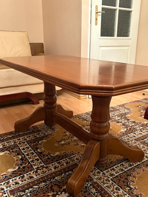 Sprzedam drewniany stół - ławę o wymiarach 125 cm x 65 cm, wys.62 cm na eleganckich ozdobnych nogach (mebel w stylu włoskim). Stan bardzo dobry. Cena nowego 1300 zł. , moja cena 300 zł.