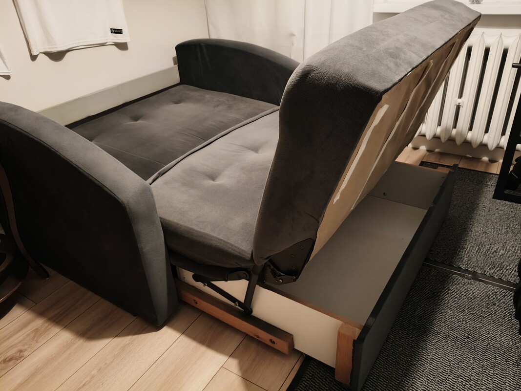Posiadam na sprzedaż łóżko typu amerykanka rozkładane za pomocą wysuwania, Łózko jest w bardzo dobrym stanie. Nie zniszczone, nie podarte. Amerykanka była poddana renowacji. Jest po wymianie materiału oraz gąbek. Super stan. POLECAM!