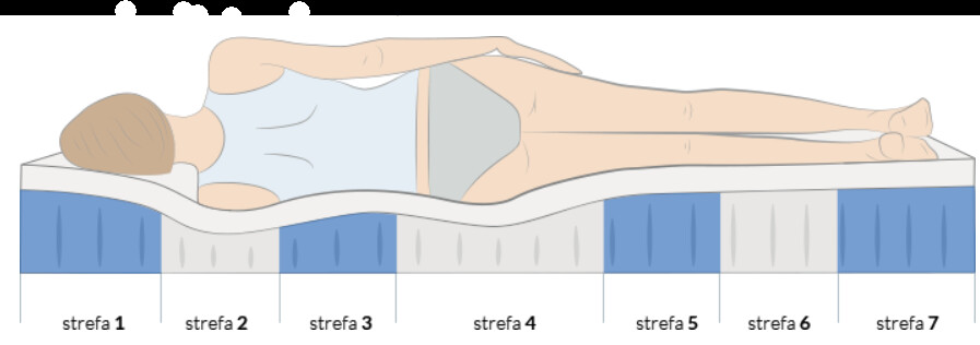 Materac zapewnia stabilne i ergonomiczne podparcie całego ciała.7 stref komfortu wspiera prawidłowe ułożenie kręgosłupa, a niezależnie pracujące sprężyny ograniczają przenoszenie ruchów.