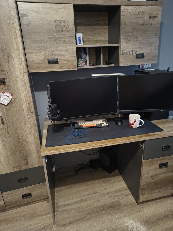 Biurko posiada ślady użytkowania(okleina odkleiła się)co widać na zdjęciu.