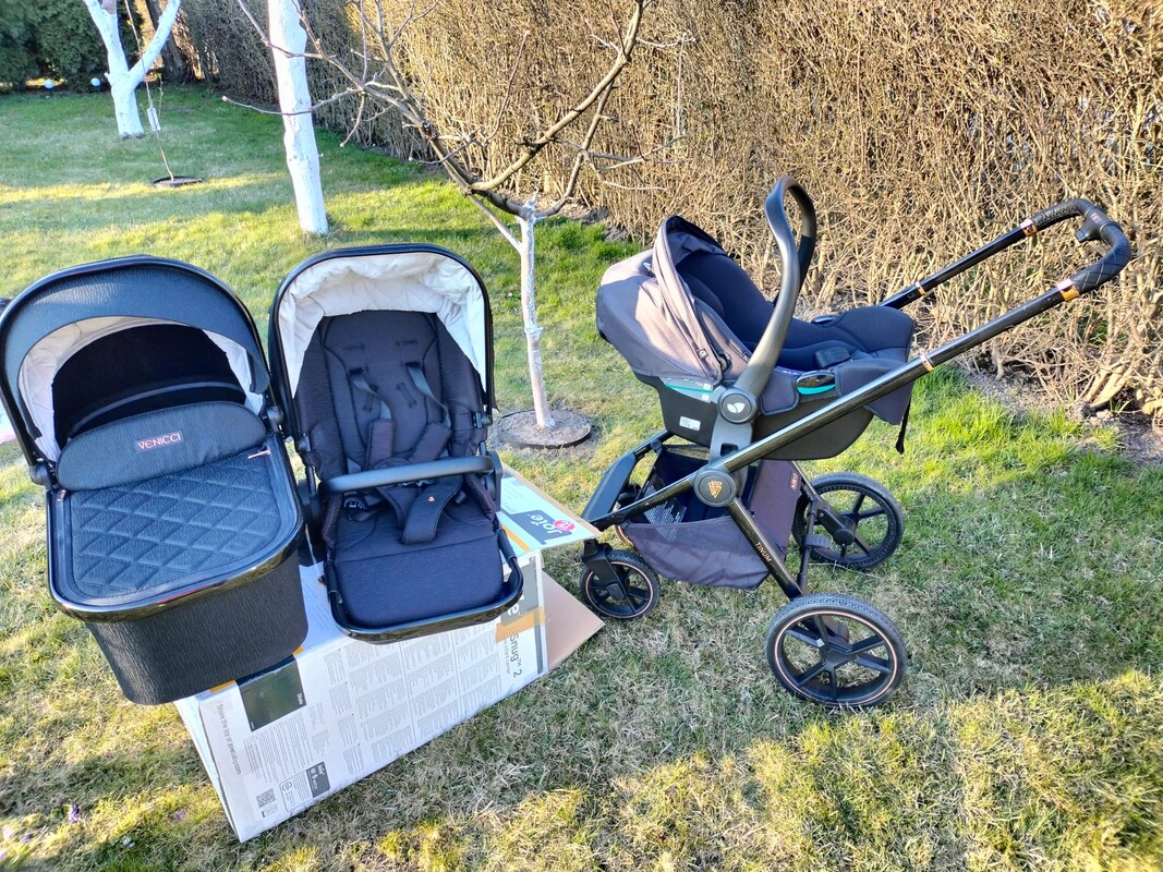 Mam do sprzedania w bardzo dobrym stanie czarny wózek firmy Vennici Tinum. Używany przez jedno dziecko. Lekkie ślady używania jak zadrapania widoczne na zdjęciu. Do wózka mamy też na sprzedaż fotelik samochodowy z bazą.