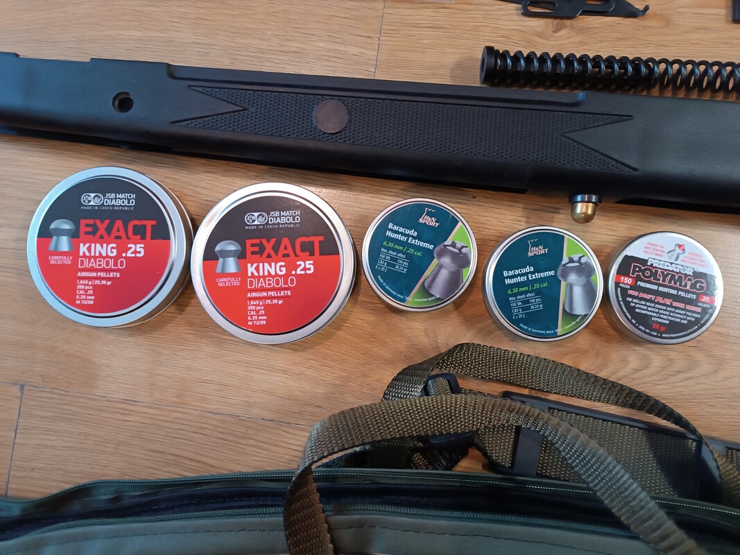 Od zakupu, z wiatrówki zostały wystrzelone tylko 4 śruty, po czym została rozebrana do możliwosci wymiany sprężyny i w takiej formie ją sprzedaję. Trzeba ją samodzielnie złożyć.