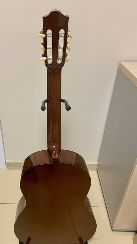 Gitara była używana sporadycznie, zadbana, bez pęknięć i uszkodzeń. Normalne ślady użytkowania, które nie wpływają na brzmienie ani komfort gry.