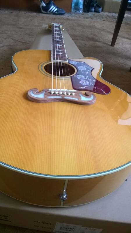 Mam do sprzedania gitarę elektroakustyczną Epiphone J-200EC Studio - Solid Top Fishman Sonitone VN Vintage Natural.