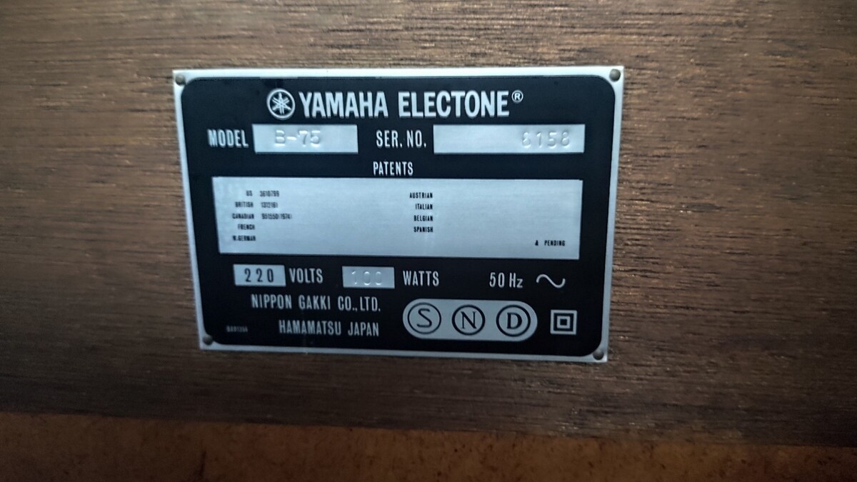Yamaha Electone B-75 – klasyczne organy elektroniczne z pedałami Na sprzedaż organy elektroniczne Yamaha Electone B-75 – solidny, klasyczny model produkowany w Japonii (Nippon Gakki, Hamamatsu). Instrument w eleganckiej, drewnianej obudowie, idealny do domu, szkoły muzycznej lub dla kolekcjonera sprzętu vintage. Specyfikacja i wyposażenie: Model: Yamaha Electone B-75 Zasilanie: 220V / 50Hz