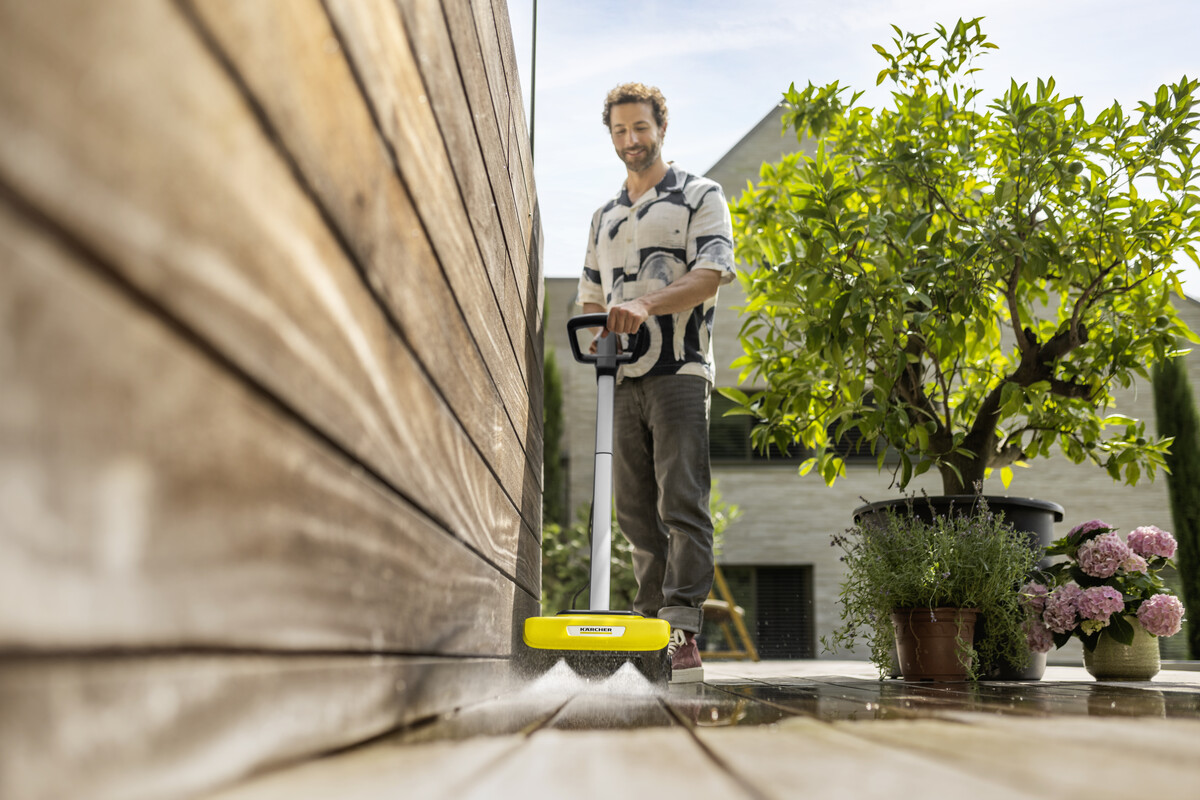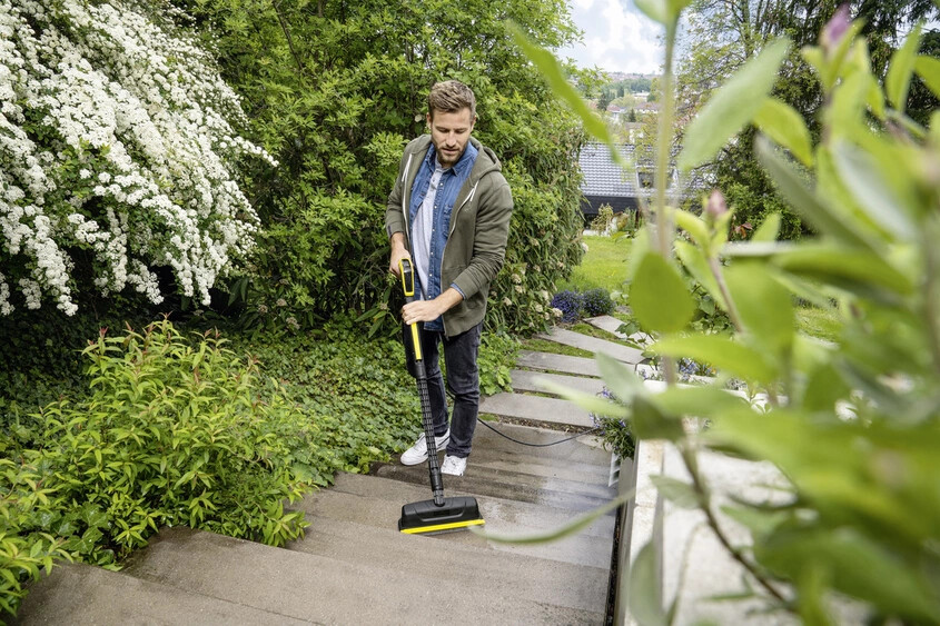 Karcher PCL 6 to elektryczne urządzenie do czyszczenia powierzchni zewnętrznych, które łączy w sobie moc czterech rotacyjnych szczotek walcowych oraz zintegrowany system podawania wody. Zapomnij o bałaganie, jaki generuje myjka wysokociśnieniowa – PCL 6 działa precyzyjnie, delikatnie i niezwykle skutecznie.