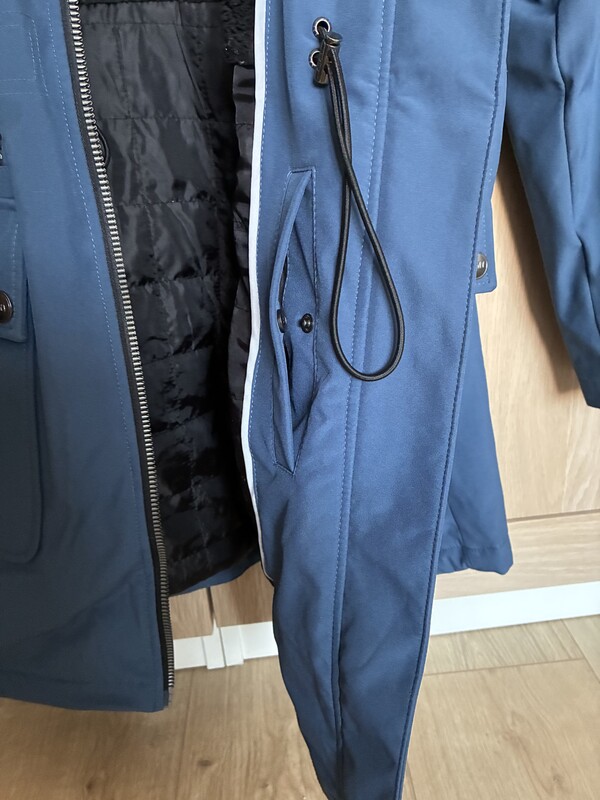 Kolor niebieski. Kaptur ocieplany i regulowany, 7 kieszeni, w tym 5 głębokich.