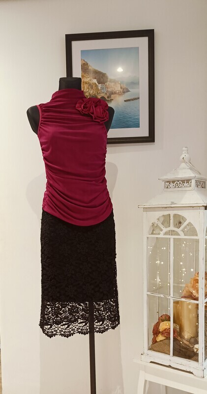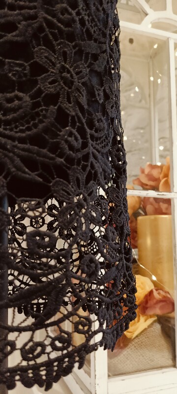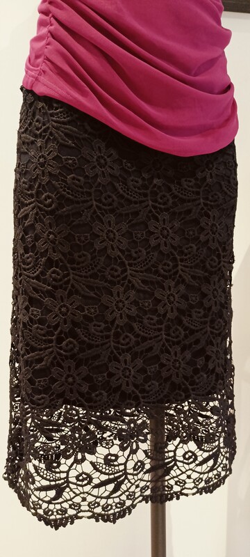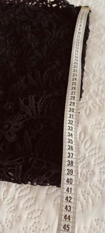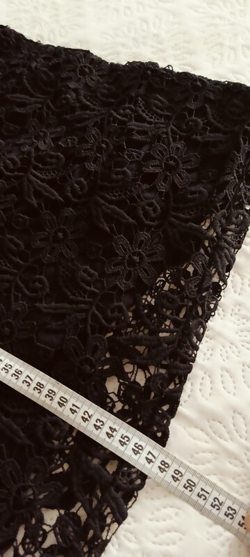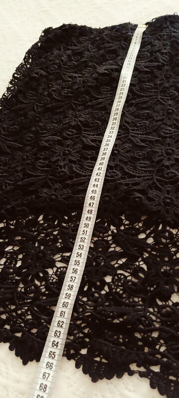 śliczna wieczorowa spódnica, marka ORSAY, rozmiar moim zdaniem 40/42 - ale proszę porównać podane na zdjęciach wymiary, kolor czarny, miękka gruba koronka typu gipiura, składu nie ma, ale to bawełna, podszewka poliester, pas w gumkę