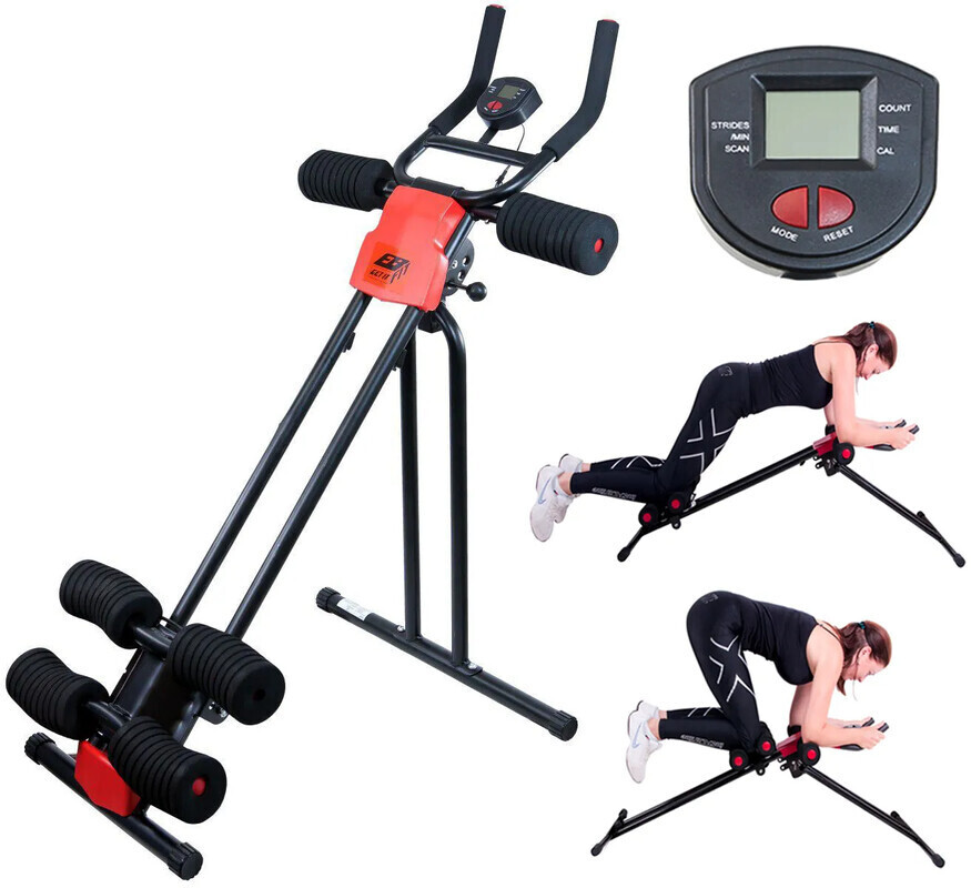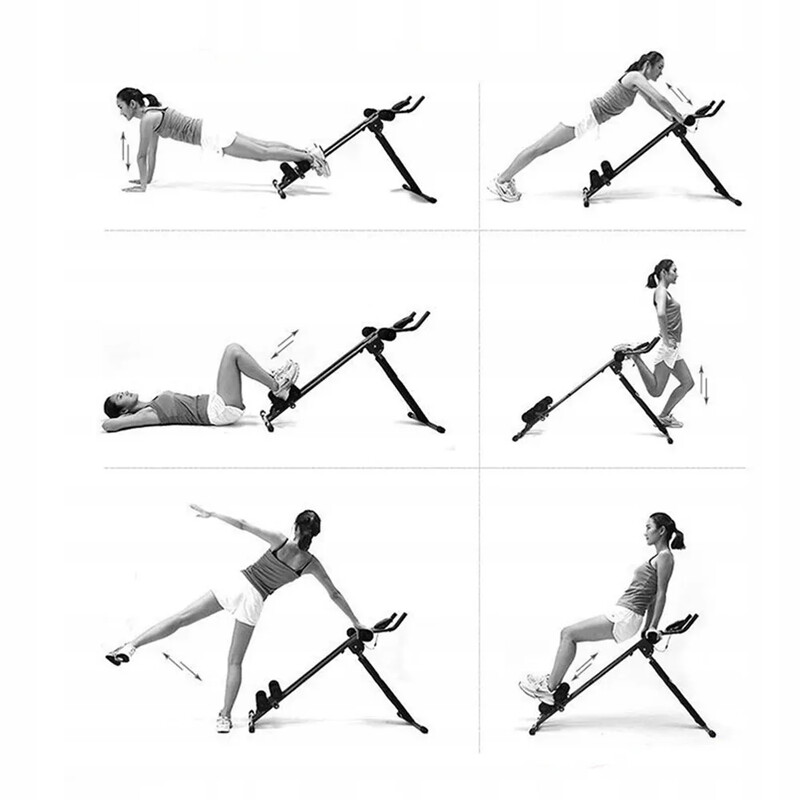 Konstrukcja jest zrobiona z wytrzymałych stalowych rurek o średnicy 27mm, co zapewnia świetną stabilność i dużą nośność. Trener jest wyposażony w łatwy w użyciu komputer, z ekranem wyświetlającym wszystkie najważniejsze informacje takie jak czas, spalone kalorie, powtórzenia na minute oraz licznik. Innymi cechami są 4 poziomowa regulacja oporu, miękie piankowe rolki, antypoślizgowe uchwyty i mechanizm zatrzymujący. Co więcej, trener może być łatwo złożony np. za szafą lub pod łóżkiem. Wszystkie te cechy sprawiają Trener jest bardzo popularną maszyną do ćwiczeń ciała.