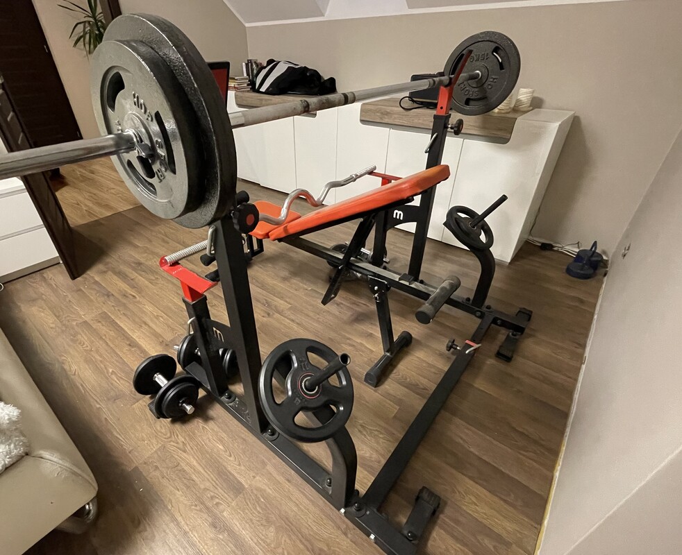 * stojak na sztangę z podporami asekuracyjnymi o regulowanych wysokościach