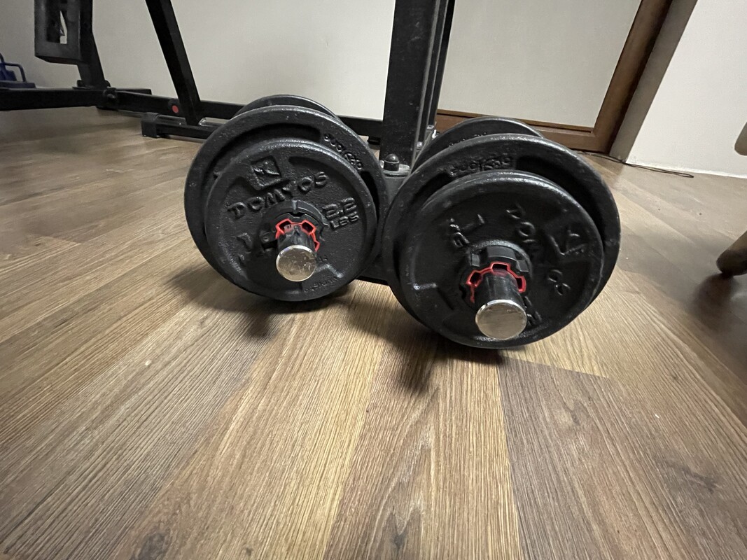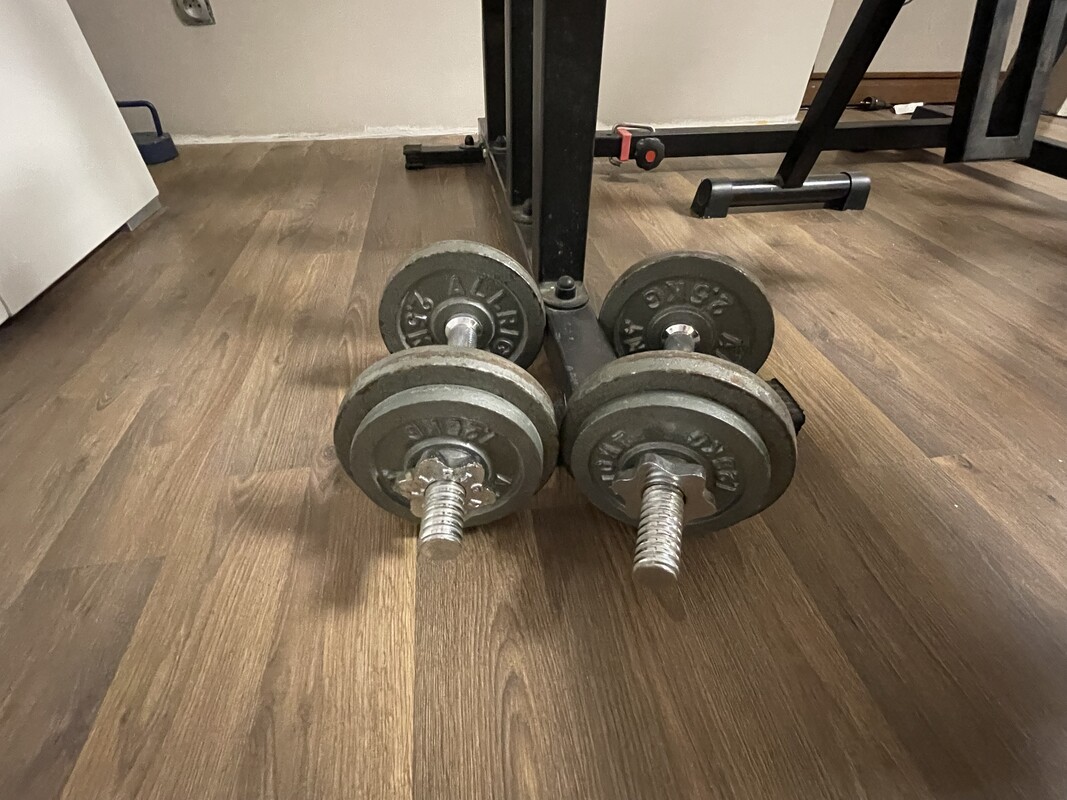 * obciążenie żeliwne 2x 15 kg, 2x10 kg