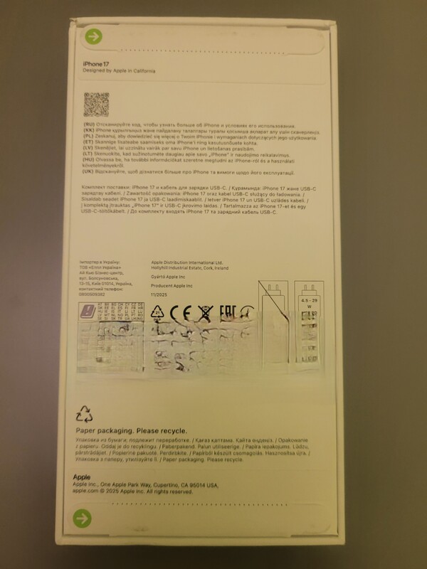 Mam do zaoferowania fabrycznie nowego iPhone’ a 17 w eleganckim, czarnym kolorze i pojemności 256 GB. Urządzenie jest zafoliowane, nienaruszone — plomby na opakowaniu świadczą o pełnej oryginalności produktu.