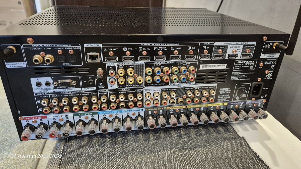 Sprzedam Amplituner Marantż sr7015 z typowej seri tego producenta. Amplituner jest w stanie idealnym, nie posiada żadnej ryski, używany był tylko w systemie stereo. Sprzedaje z powodu zakupu nowego wzmacniacza. Amplituner posiada system 9.2 i jest bardzo mocny, 125w przy 8 ohm i 165 przy 6 ohm, 180 przy 4ohm na kanał. Amplituner nie gdy nie był w żadnym serwisie i nie był rozbierany. Posiadam orginalny karton.