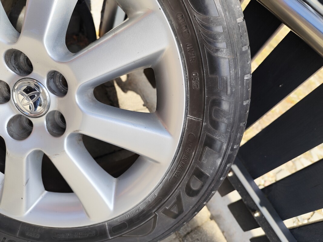Sprzedam 4 felgi aluminiowe wraz z oponami od Toyoty Avensis.