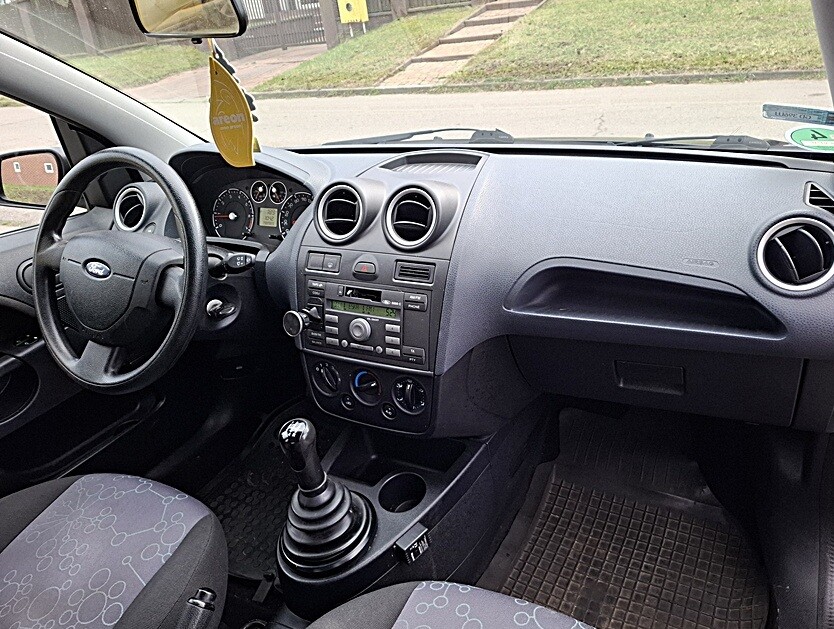 Sprzedam Forda Fiestę, samochód w stałym użytkowaniu, karoseria bez rdzy łącznie z progami, zawieszenie niewybite, silnik pracuje dobrze- rozrząd na łańcuszku, środek samochodu czysty i zadbany, Samochód serwisowany na bieżąco, opony całoroczne.