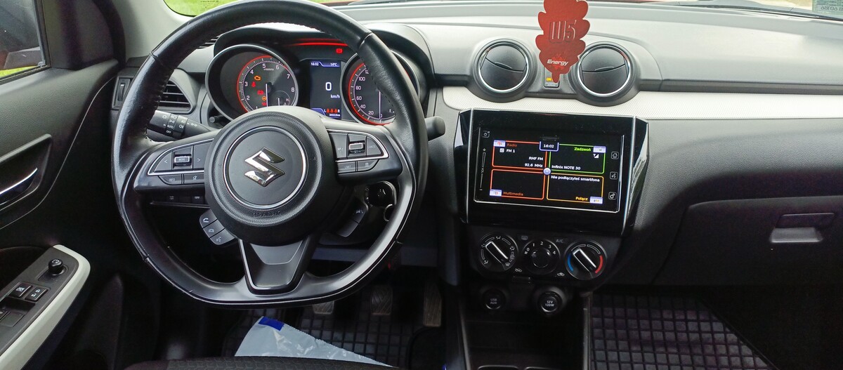 Sprzedam Suzuki Swift rok 2022 w wersji hybrid kupiony w polskim salonie pierwszy właściciel, dodatkowo komplet opon zimowych. Skrzynia biegów manualna, bardzo bogate wyposażenie. kamera cofania, ful LED przednie reflektory, duże dotykowe radio z nawigacją, czujnik parkowania, asystent pasa ruchu, tempomat, radar, czujnik deszczu, el-szyby i lusterka, monitor martwego pola BSM, ostrzeżenie o ruchu poprzecznym podczas z tyłu pojazdu, bardzo niskie spalanie 4,5 do 5,5 miasto.