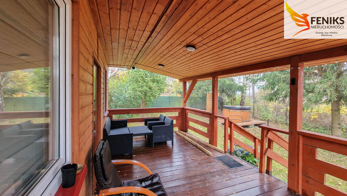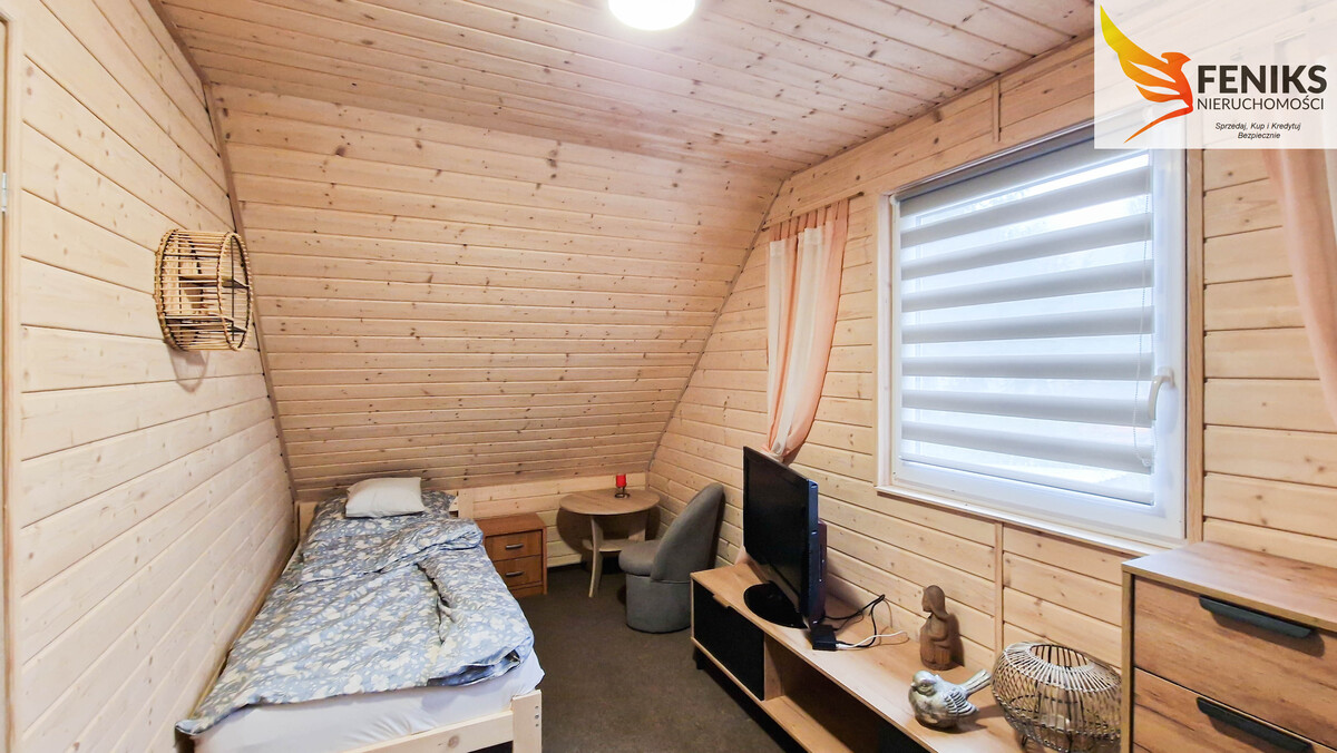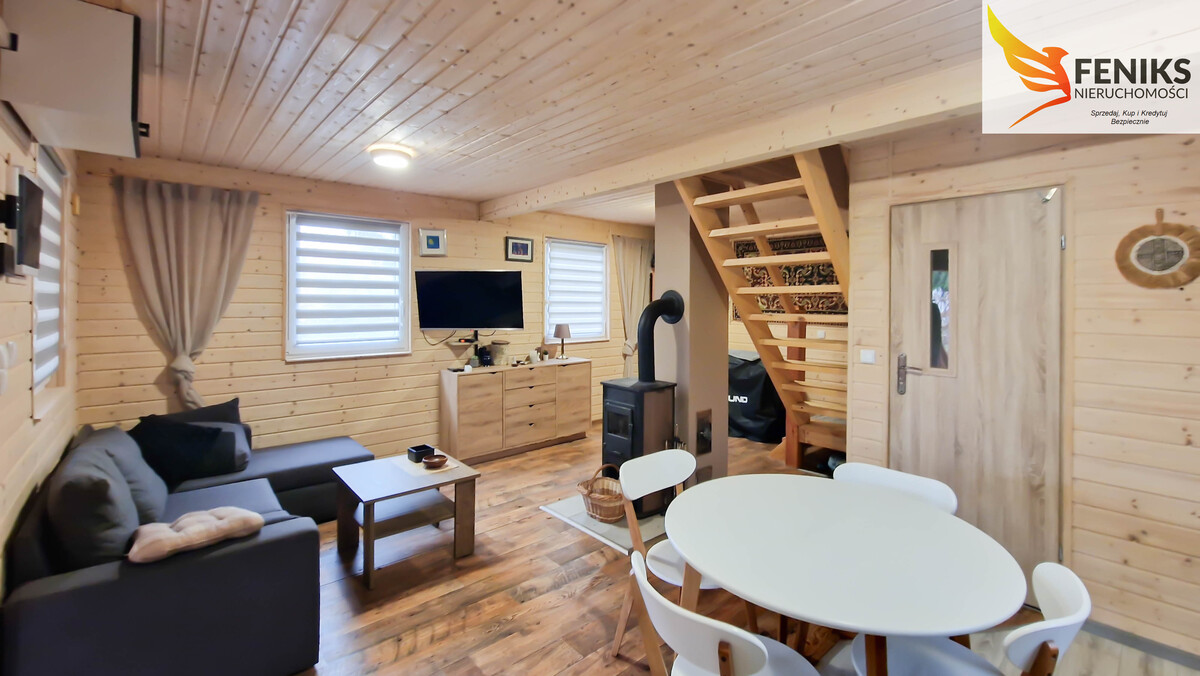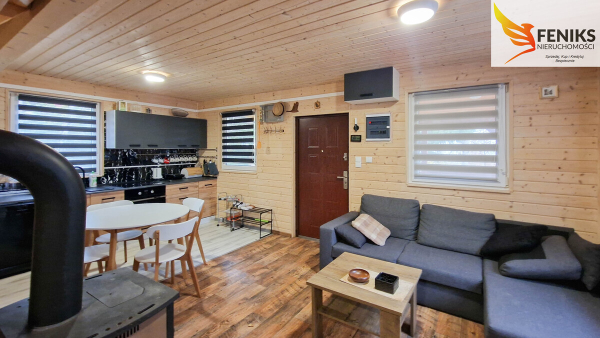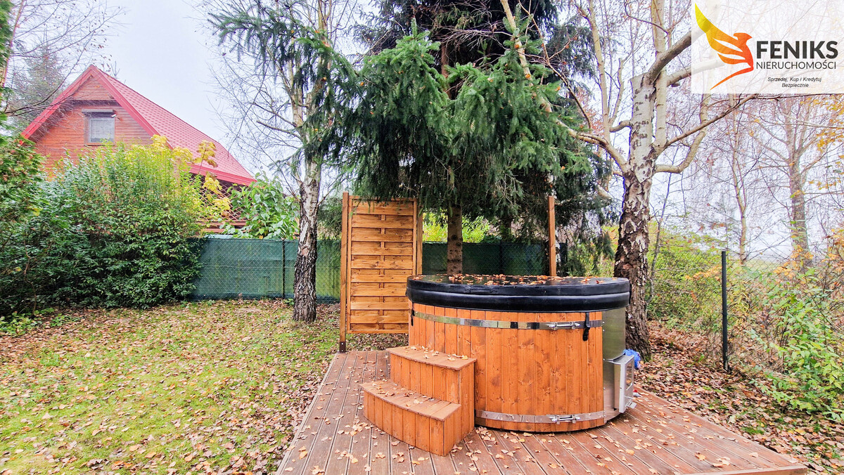 Domek stoi na działce o powierzchni 600 m², która zapewnia prywatność oraz wygodną przestrzeń do odpoczynku. Na terenie znajduje się również mała szopa, idealna do przechowywania drewna, narzędzi czy sprzętu rekreacyjnego. Jednym z największych atutów posesji jest jacuzzi z hydromasażem, aeromasażem i oświetleniem LED, podgrzewane od spodu specjalnym piecykiem — dzięki temu można korzystać z niego nawet podczas chłodniejszych wieczorów. Na działce wykonano także szambo o pojemności 500 litrów, co zapewnia praktyczne funkcjonowanie podczas dłuższych pobytów. Sam domek jest starannie wykonany i bardzo zadbany. Wyposażono go we wszystko, co potrzebne do codziennego życia, dzięki czemu świetnie nadaje się także na dłuższe pobyty. W chłodniejsze dni komfort zapewnia piec na drewno, pozwalający szybko dogrzać wnętrze. Część mieszkalna jest świeżo po remoncie, starannie wykończone i bardzo zadbane. Znajdują się w nim m. in. nowe sprzęty kuchenne, a całe wyposażenie pozostaje na miejscu i jest wliczone w cenę, co pozwala korzystać z obiektu od razu, bez dodatkowych kosztów.