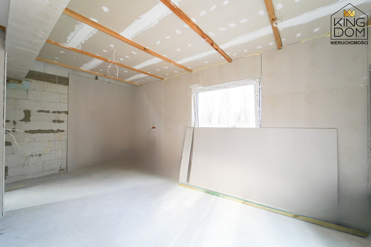 Stan techniczny: Wnętrze jest przygotowane do prac wykończeniowych, takich jak gruntowanie i aranżacja. Do samodzielnego montażu pozostają schody oraz drzwi wejściowe.