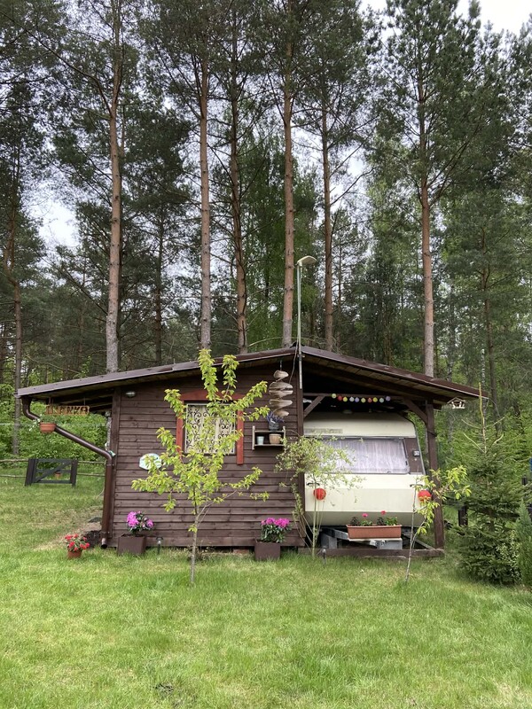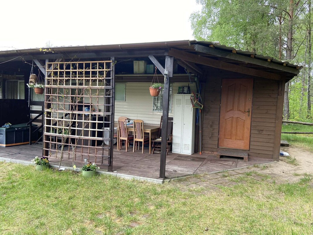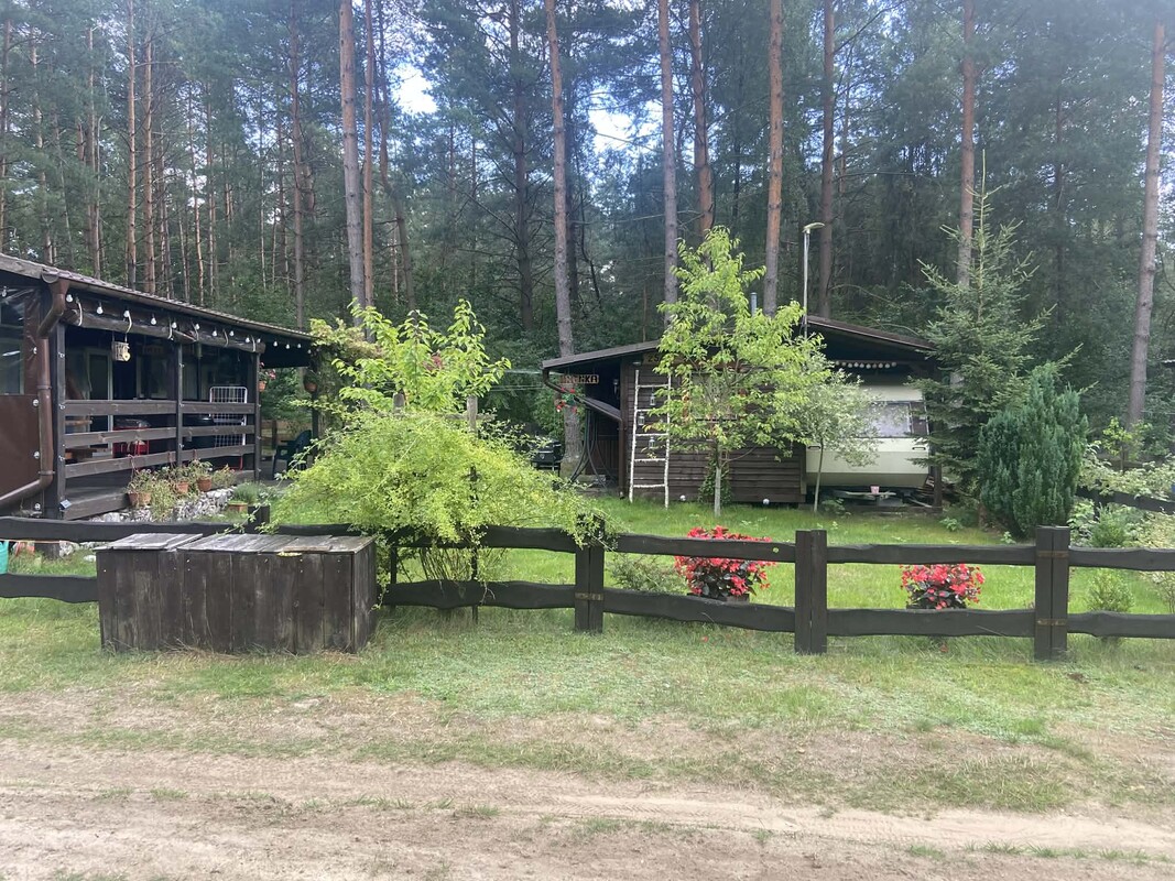 Działka ok. 300m2,w pełni zagospodarowana, nie wymaga wkładu finansowego. Na działce ogrodzonej znajduje się: 1.Domek holenderski ( ok. 40 m2) zadaszony, obudowany pięknym tarasem zamykanym. Trzy sypialnie, salon z aneksem kuchennym, łazienka i toaleta. Spokojnie pomieści 7-8 osób 2.Przyczepa kempingowa, zadaszona, obudowana salonem. Pomieści 6 osób. Dodatkowo dobudowana kuchnia w pełni wyposażona, z dodatkową kabiną prysznicową oraz dodatkowa toaleta z umywalką. Wszystkie media na działce. Do jeziora około 5 min spacerkiem. Dzierżawa roczna 3 tyś. Polecam!!!!