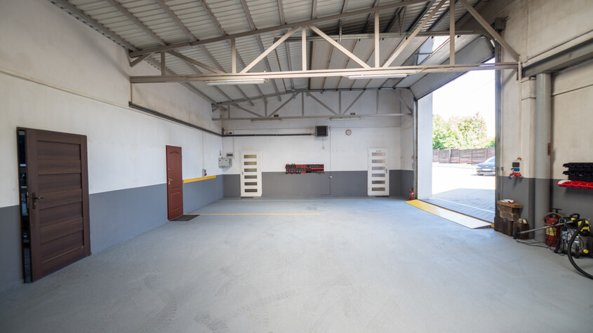 Hala stanowi odrębną nieruchomość, składającą się z części usługowej stanowiącej warsztat samochodowy z dwoma podnośnikami (kolejne dwa podnośniki nożycowe są w przygotowaniu), do której można wjechać samochodem przez bramę wjazdową. Z części hali wyodrębniony został również magazynek. Na hali znajduje się kotłownia w której zastosowano ogrzewanie gazowe z sieci miejskiej, okna PCV i świetliki w dachu.