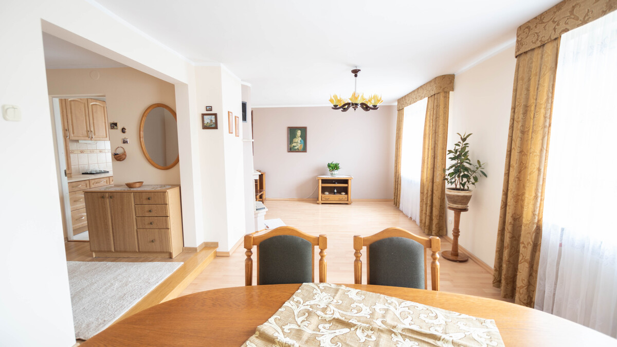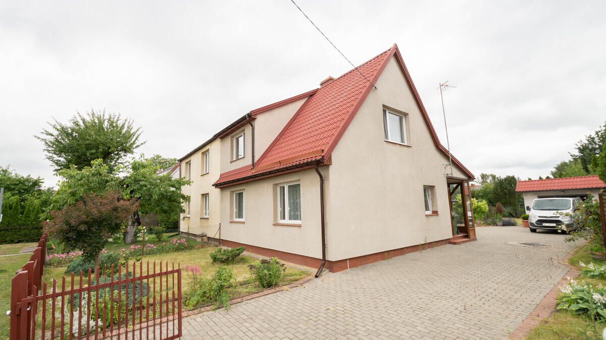 Dom jest jednopiętrowy, podpiwniczony, z garażem wolnostojącym na działce. Na parterze znajduje się duży, słoneczny salon z wystawą południową, przestronna kuchnia, łazienka z WC oraz przedpokój z wejściem do piwnicy i schodami prowadzącymi na piętro. Na pierwszym piętrze znajdują się dwa ustawne pokoje, idealne do urządzenia sypialni, gabinetu czy pokoju dziecięcego.
