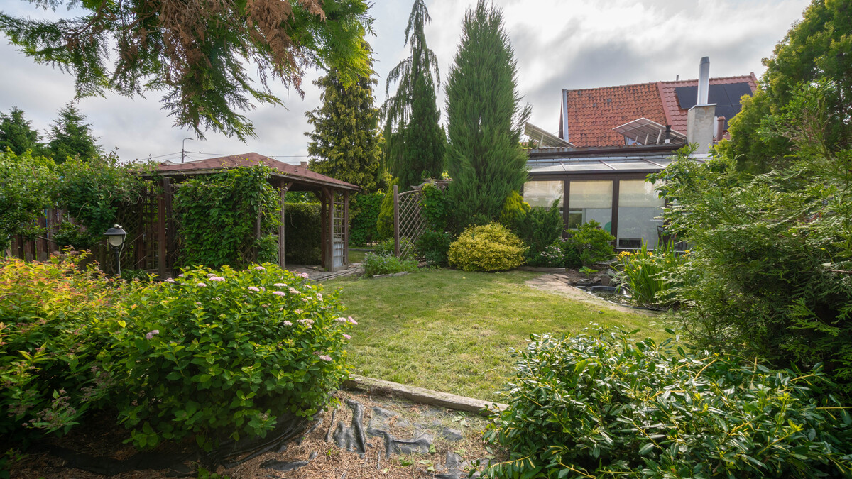 Dobudowana przydomowa przeszklona oranżeria stanowiąca zaciszne miejsce wypoczynku.