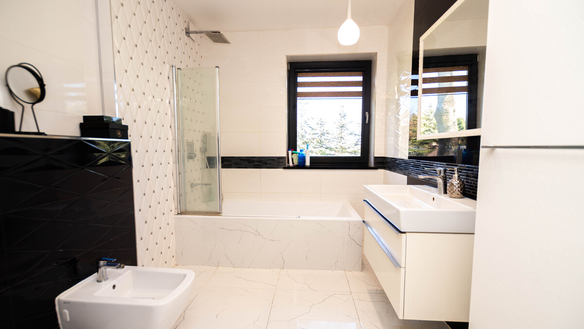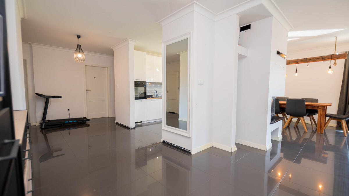 Budynek wyposażony jest w nowoczesne, energooszczędne rozwiązania. Ogrzewanie podłogowe zasilane pompą ciepła zapewnia komfort cieplny przy minimalnych kosztach eksploatacji, a dodatkowy narożny kominek tworzy przytulną atmosferę i może pełnić funkcję wspomagającą w chłodniejsze dni. Zainstalowana instalacja fotowoltaiczna o mocy ponad 9 kw znacząco obniża koszty utrzymania domu, dzięki czemu właściciele ponoszą jedynie podstawowe opłaty stałe za energię, wodę oraz wywóz nieczystości. Roczny podatek od nieruchomości wynosi około 230 zł.