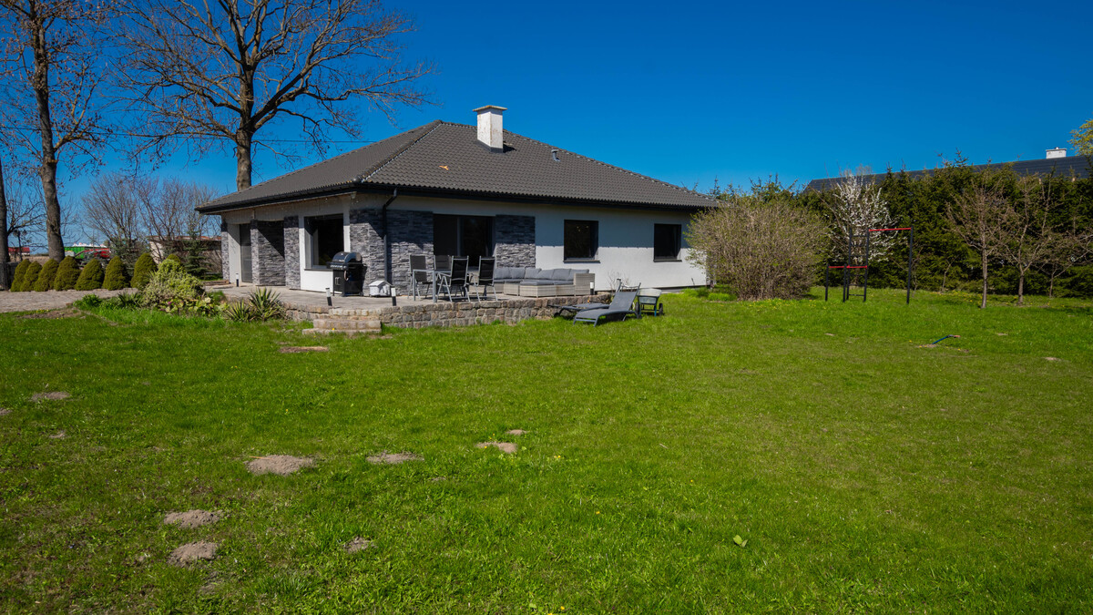 Na sprzedaż oferujemy nowoczesny, wolnostojący dom parterowy o powierzchni użytkowej 119,7 m², położony na przestronnej działce o powierzchni 3011 m² w spokojnej i zielonej miejscowości Nowotki,