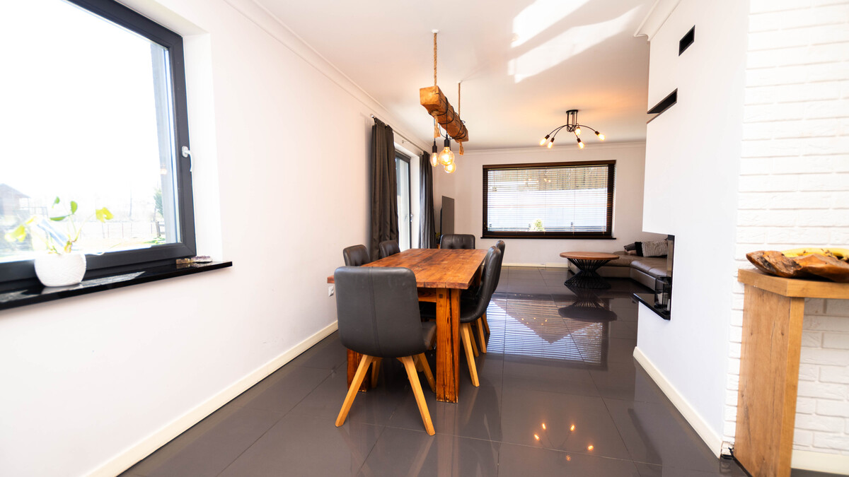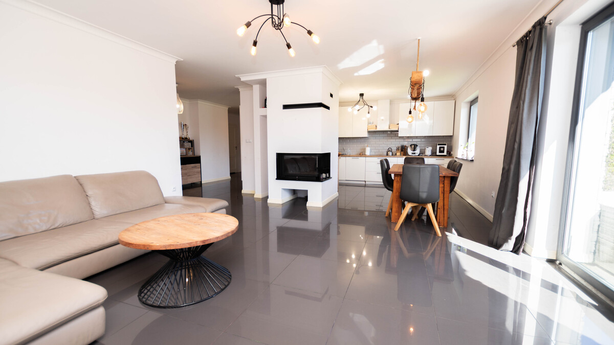 Dom został zaprojektowany z myślą o komforcie codziennego życia. Sercem nieruchomości jest jasny