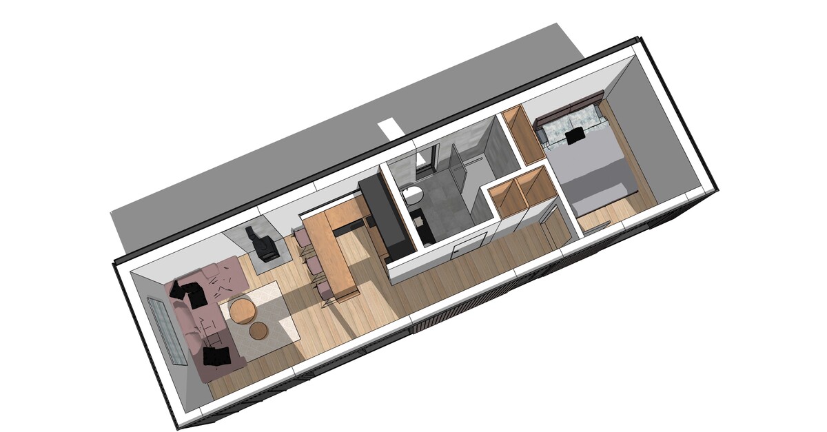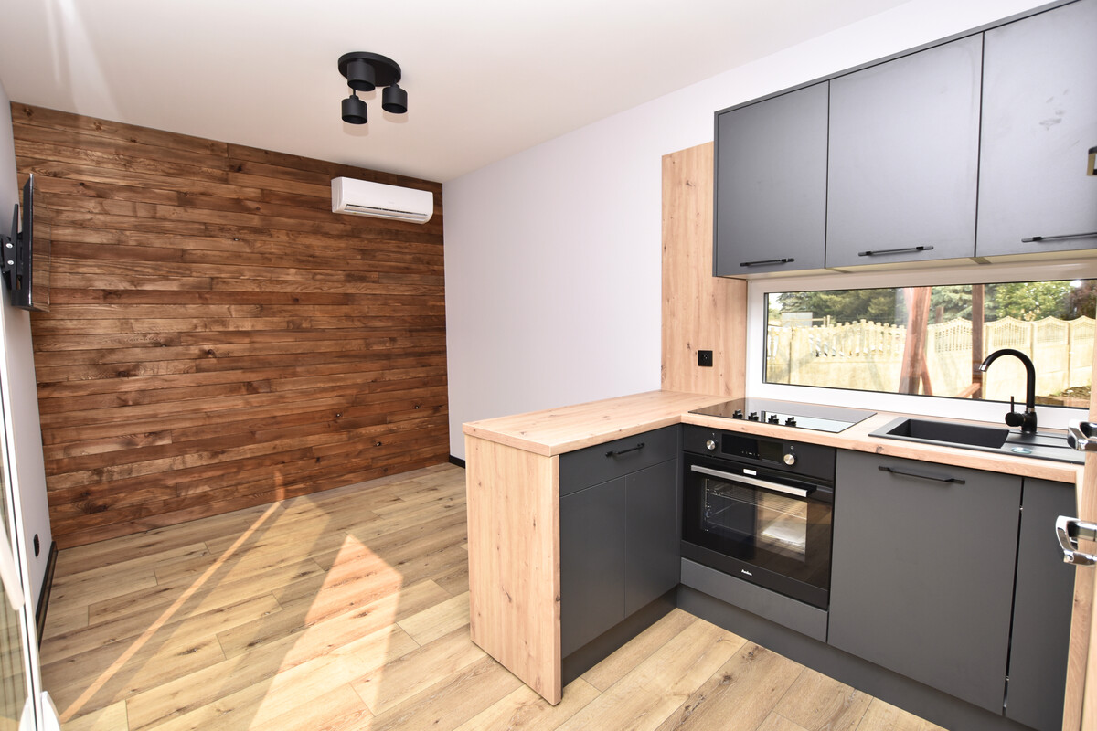 Domek wykonany z dbałością o detale, funkcjonalny, nowoczesny i ekonomiczny w utrzymaniu. Idealny zarówno na działkę rekreacyjną, jak i jako mikrodom do całorocznego użytku.