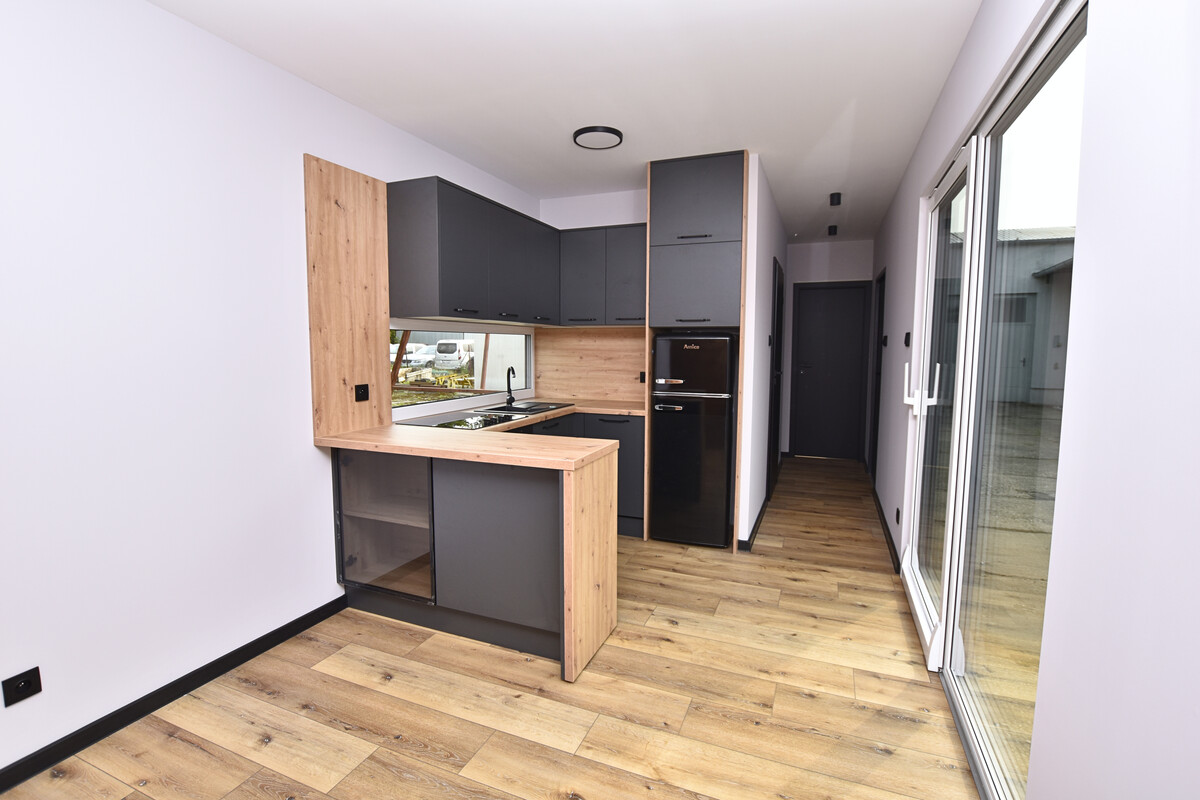 Na sprzedaż nowoczesny, w pełni wyposażony domek mobilny o całorocznym standardzie, idealny jako miejsce wypoczynku lub lokum do całorocznego zamieszkania. Gotowy do odbioru od zaraz – wystarczy podłączyć media i można mieszkać!