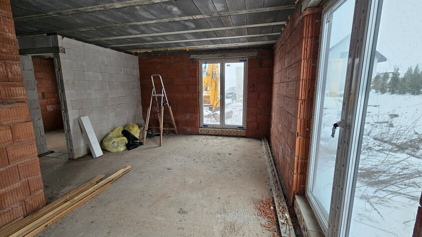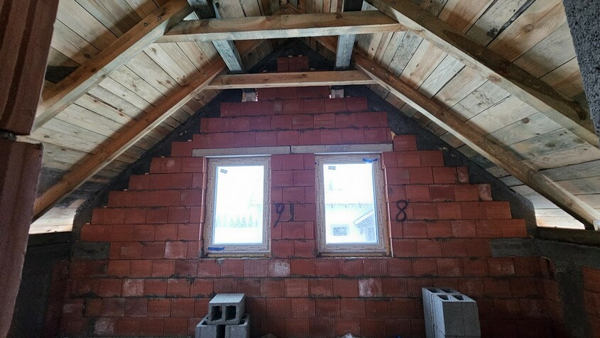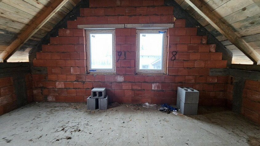 Dom pokryty dachówką ceramiczną, okna trzyszybowe, przewidziano wentylację grawitacyjną, piec na pellet, szambo ekologiczne.