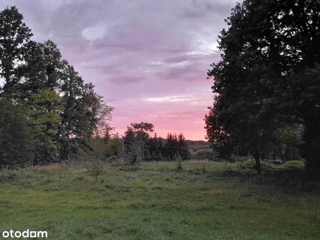 Powierzchnia działki to 1200 m2.Otoczenie z trzech stron drzewami, głównie okazałymi dębami. Działka jest bardzo zadbana, z wieloletnimi oraz z nowymi nasadzeniami. Wjazd na działkę z drogi gruntowej.