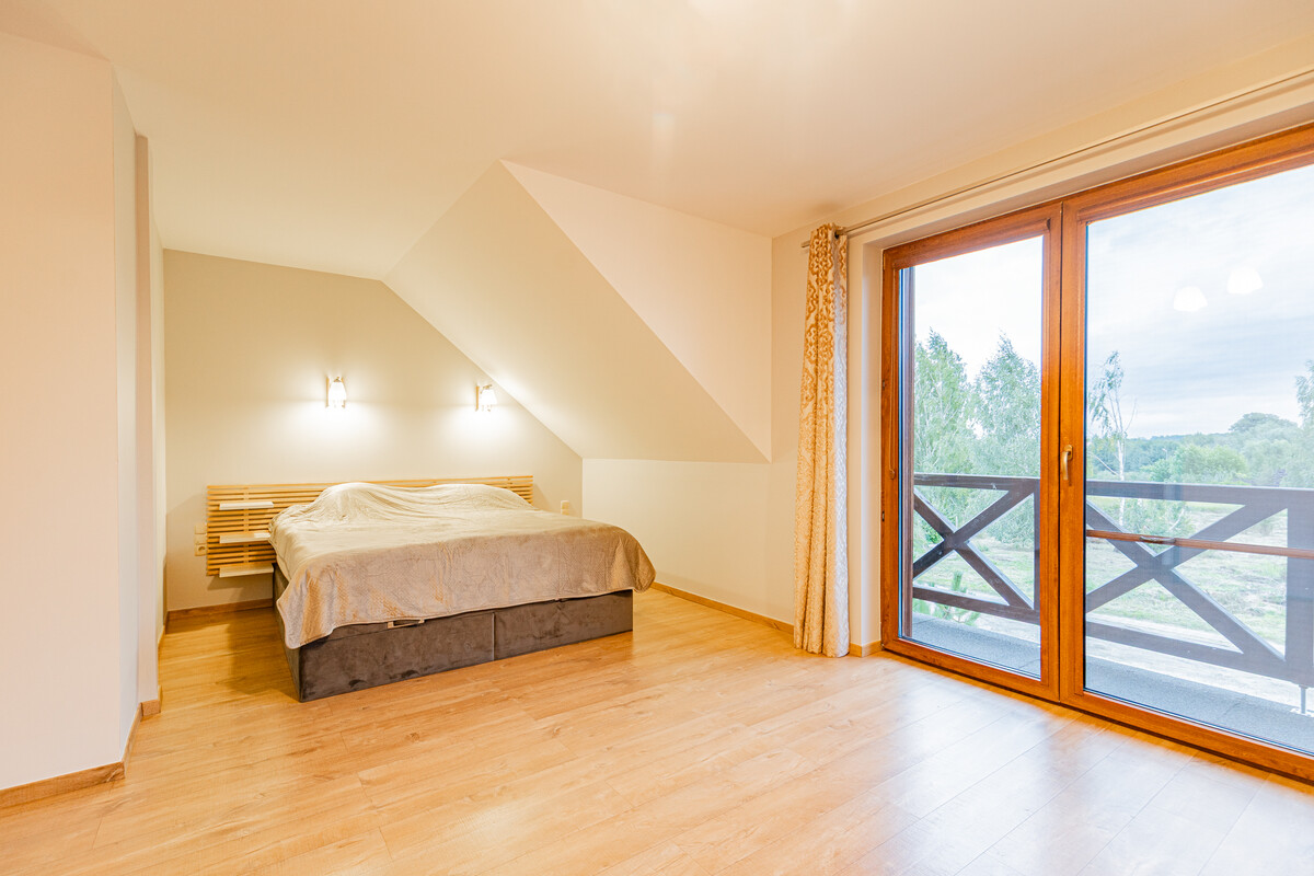 - 3 sypialnie na piętrze, w tym główna z balkonem i prywatną łazienką,