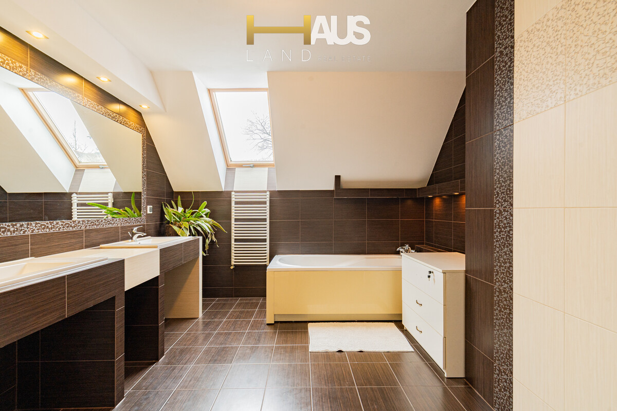 - Dwie eleganckie, duże łazienki - na parterze z prysznicem, na piętrze z wanną,